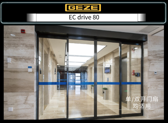 蓋澤ECdrive80平移門系統(tǒng),可用于單道門或雙開門,門扇材料可挑選鋼化夾膠玻璃、中空玻璃窗、木質(zhì)及其有外框玻璃移門,建筑門面整體解決方案——(咨詢深圳地區(qū)代理商-深圳市乙元興自動(dòng)門有限公司)